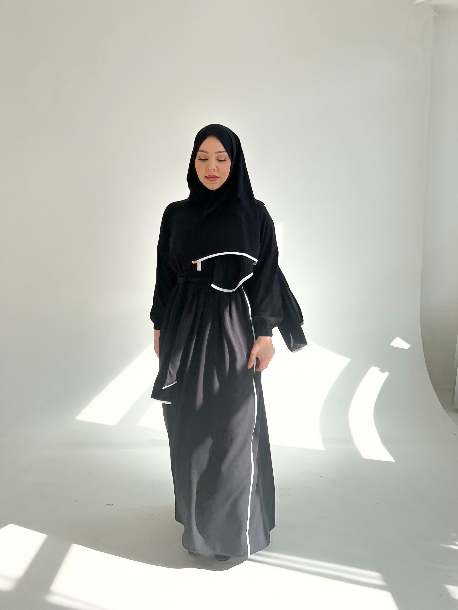 - Elegante Abaya mit integriertem Hijab + Tasche & Gebesteppich als Set